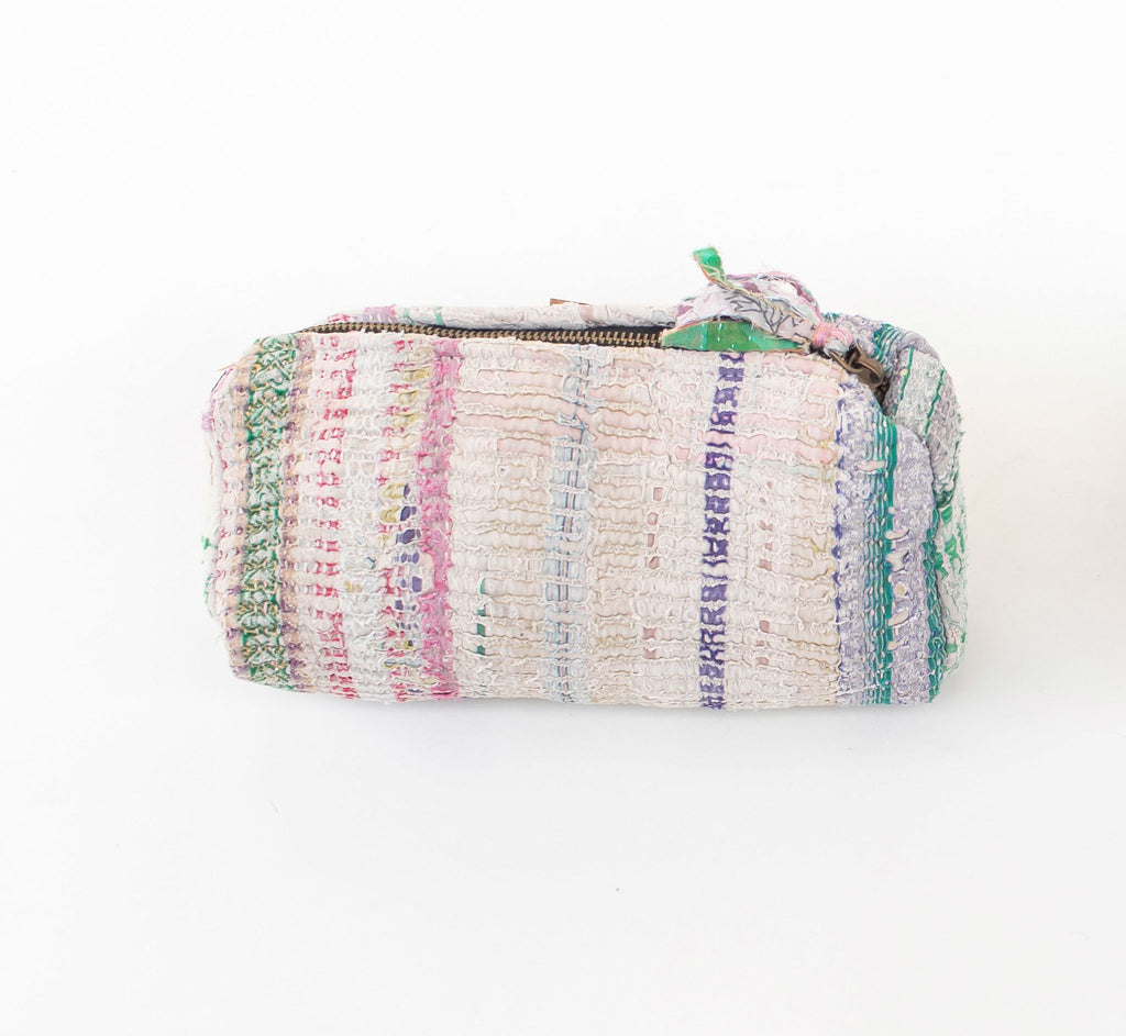 Do you love a light, calm look? Vintage Pearl is our white/cream sari pouch with delicate block print. It gathers your small essentials – makeup, jewelry, keys, and earbuds – and adds a touch of elegant boho charm to your bag. Each pouch is unique, so the one you choose is completely yours.